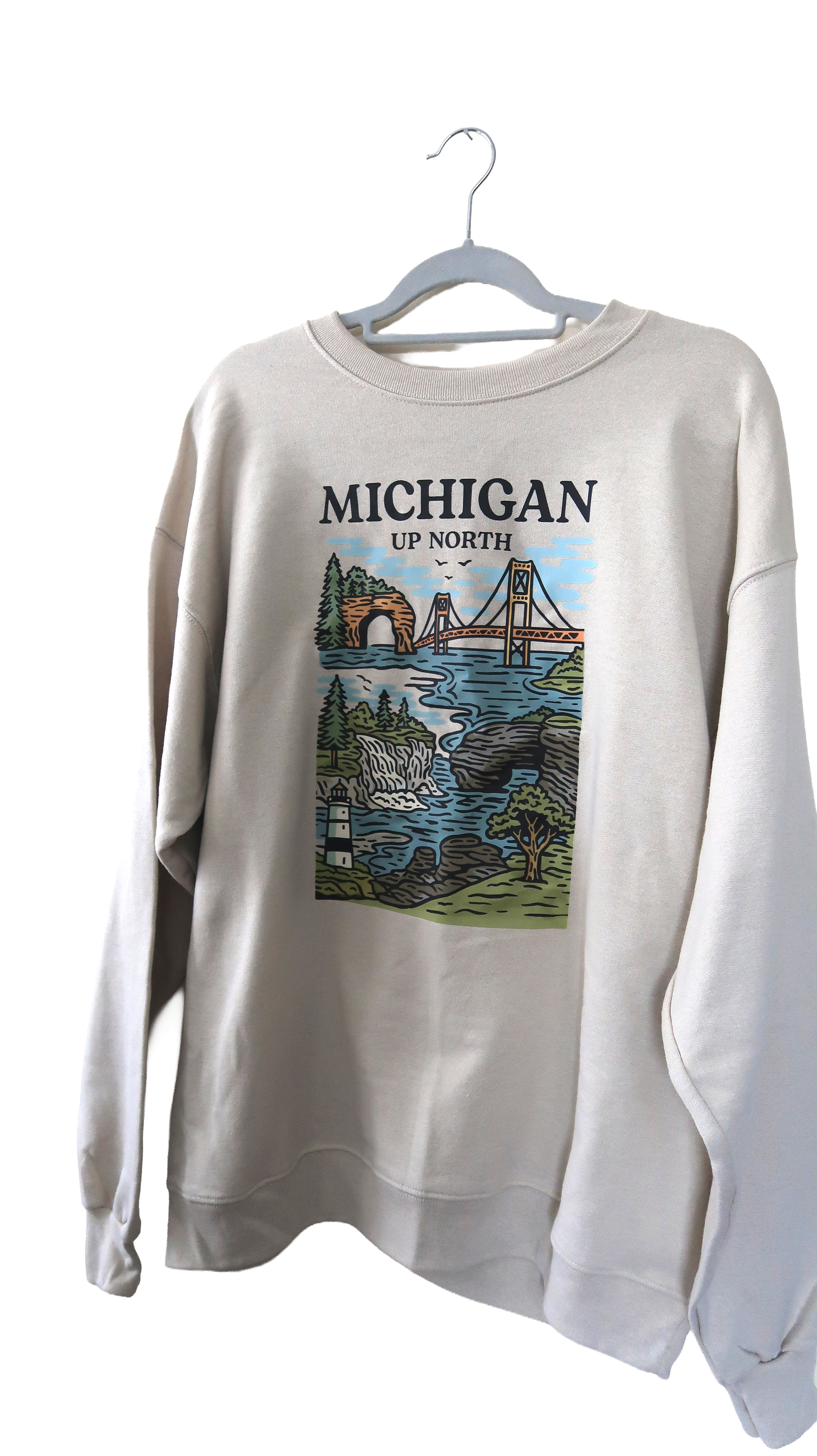 Show your love for Michigan anywhere you go with our Up North Crewneck.